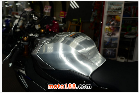 R1M 刻意將鋁合金油箱的原色外露
