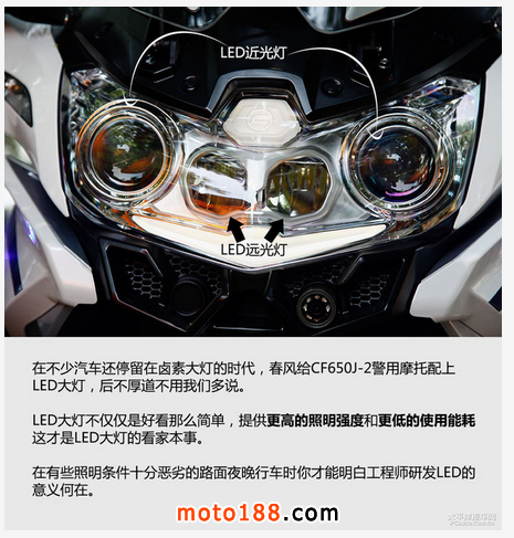你心中一熱也想圓上自己的摩托夢。上網看看資料查查車發現動輒十幾萬元的價格讓那些進口的大貿車變得難以接近。預算有限是不是就買不了大排量摩托了呢?當然不是,我們今天的主角正式登場,它是來自春風的CF650J-2警用摩托。