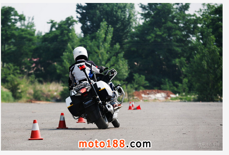 繞樁訓練的是綜合控車技巧,在繞樁的同時車身的重心隨時發生著擺動,車速越高重心的轉移就越快。春風CF650J-2看起來高大威猛,實際跨上車點火、掛檔、松離合輕給油車子就輕松的走起來了。