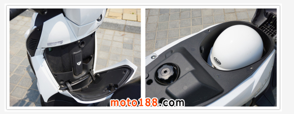 4.儲物空間明顯不足,前儲物箱“形同虛設(shè)”僅僅能放付手套或面巾紙,后座桶放3/4頭盔都勉勉強強就別說全盔了(怪不得此車在歐洲尾箱是標(biāo)配)。