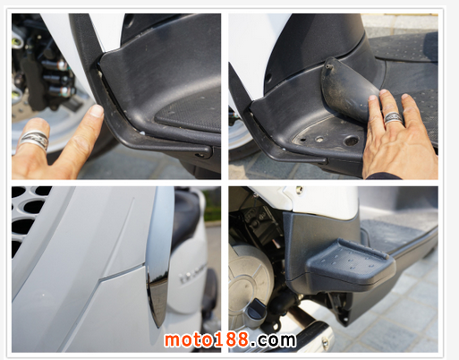 寧少爺:整體做工還不錯,但是如果仔細(xì)觀察的話會發(fā)現(xiàn)“圣甲蟲”的細(xì)節(jié)比國產(chǎn)比亞喬系列踏板摩托的做工稍稍差了一些。