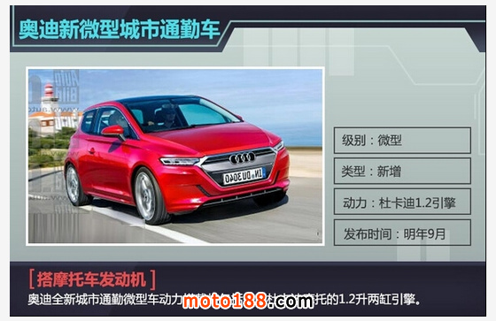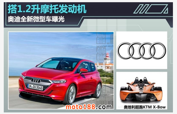 摩托車發動機搭載在汽車上?如此“奇葩”組合在一起會產生什么化學效應呢?這個現象在奧迪身上實現了。日前,網通社從芬蘭媒體worldcarfans獲悉,奧迪未來新動向是將推出一款全新城市通勤微型車,競爭對手瞄準第二代大眾up以及斯柯達Citigo,新車動力搭載將包括來自杜卡迪摩托的1.2升兩缸引擎,新車預計將在明年法蘭克福國際車展正式發布。