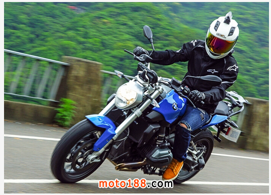 水平對臥引擎之設計,能有效降低車體中心,左右連續彎道操控一點都不困難,雖然沒有采用 BMW 招牌之一的 Telelever 前輪懸吊系統,但使用 Telescope 潛望式 45mm 倒立前叉也并不會太過于軟弱,騎乘特性也比較不再這么特殊,更好上手。