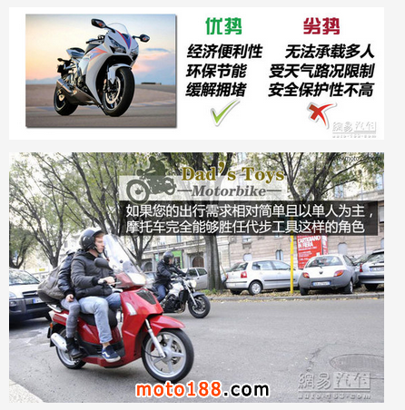 以個人的角度來看,摩托車其實是一個目前階段較為理想的交通工具,畢竟交通日益堵塞及能源短缺是短期內無法規避的事實,況且在限購政策下,公共交通設施并不能完全滿足百姓的日常出行需求,如果您的出行需求相對簡單且以單人為主,摩托車完全能夠勝任代步工具這樣的角色,單從這一點上來看,摩托車出行的利顯然是要大于弊的。