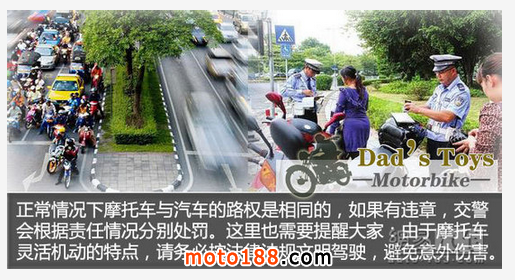 由上面的內容我們不難發現,同屬于機動車的摩托車實際上遵循的法律法規與汽車基本一致,也就是說:正常情況下摩托車的路權是與汽車相同的。如果有違章情況,交警會根據《道路交通管理條例》及各地政策進行相應處罰。但由于摩托車的監管和取證的難度相對較高,在界定責任上會出現部分模糊的地方,從整體來說摩托車仍屬于弱勢的一方。這里我們也需要再一次提醒大家,無論您駕駛摩托車還是駕駛汽車,首先都要確保文明行車安全駕駛,避免意外情況所帶來不必要的傷害。