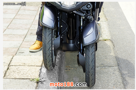 Tricity 125 雖然采用 UBS 前后連動煞車系統,但是這套系統在操作時,拉桿行程會因為操作的煞車而影響另一組煞車,所以在騎乘時建議要完全先找個地方適應這套煞車邏輯,習慣后再上路,力道適中的煞車也不成問題。