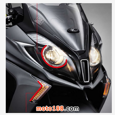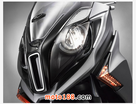 ●DOWNTOWN350i全新設計的車頭大燈,更俱氣派。