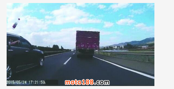 最近幾天,一段名為“高速上小汽車乘客向正常行駛的摩托車砸礦泉水瓶”的視頻在各大社交網站熱傳,當事車主遭網友搜索,并將其個人信息公布到網上,隨后,車主在QQ空間回應稱,瓶子是后排朋友扔的,并就此事表示道歉。