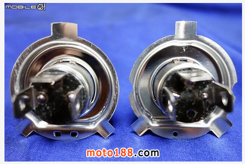不過(guò)既然拿到 H17 燈泡,就順手與現(xiàn)任三陽(yáng)常用大燈 HS1 進(jìn)行比較,左方為 HS1,右方為 H17,可以發(fā)現(xiàn)在大燈燈絲位置稍微有一點(diǎn)點(diǎn)不同,另外就是 H17 燈組的安裝防呆凸耳寬度比起 HS1 都有所增寬,燈泡左右邊的鐵片也有新的防呆凹槽,能讓 H17 安裝時(shí)更輕松能找到定位。