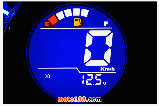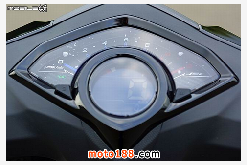儀表板下方的多功能液晶顯示區(qū),除了基本的油量表與時(shí)速表顯示功能外,最底下的部分可以在總里程、單趟里程、機(jī)油使用里程、時(shí)間顯示、電壓表與數(shù)字式轉(zhuǎn)速表進(jìn)行切換,其中最后的數(shù)字式轉(zhuǎn)速表的單位為百位劃分,也就是盡會(huì)顯示百位數(shù)以上差異,如 1100rpm 1200rpm 1300rpm,并無(wú)法顯示至 1150rpm 1200rpm 1250rpm 這種較細(xì)的劃分方式。