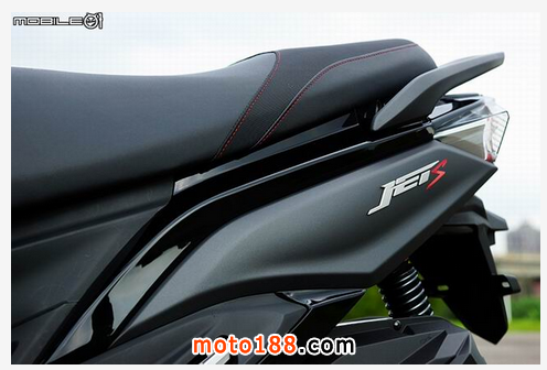 JET S 的座墊部分,采用大面積的座墊,雙材質(zhì)縫紉與紅線滾邊,除了讓前座能夠坐的舒適外,后座也有特別減低六度傾斜角,中長(zhǎng)途騎乘時(shí)也能明顯感到差異。