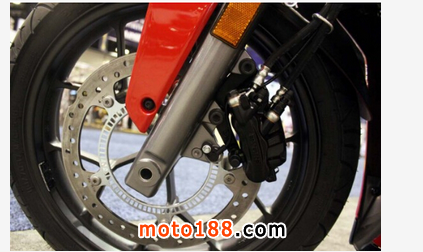 煞車系統也不馬虎,CBS連動煞車配上前300mm碟盤與單向三活塞卡鉗,后220m碟盤單活塞卡鉗。