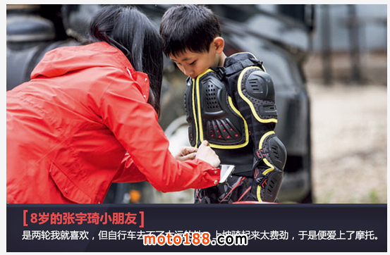 聽張琪說:現在的小朋友在家除了玩電腦就是看電視、玩游戲機,本身戶外活動相對減少,有強度的活動就更少了。這直接使得小朋友的動手、身體協調和抗擊打摔打能力都直線下降,越野摩托車的運動剛好鍛煉了他的意志和身體。我騎車這么久,從我自身就確定了這項運動是積極的,只要他的安全措施到位,這項運動的危險系數并不高,同時對體魄、心智、動手能力都有提高。其他的準備工作不需要太多,至于摩托車的磕碰和受點小傷,家里人做好心理準備就行了,畢竟意外無處不在。