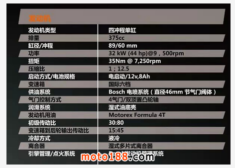 緊湊,極致輕量化的發(fā)動機。僅重36kg, 水冷單缸四沖程,雙置頂凸輪軸,四氣門,電子燃油噴射,以上皆是讓KTM RC390擁有優(yōu)異性能的秘密!
