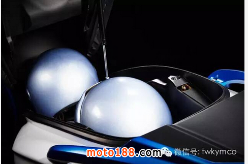 車輛中部擁有超大超寬的大型置物箱,足可放置兩頂安全帽,讓旅行置物,不再擔(dān)憂;