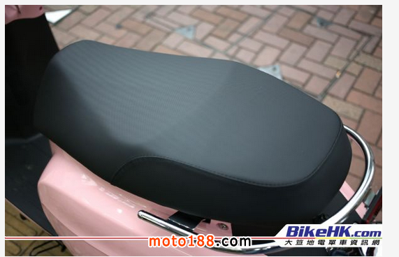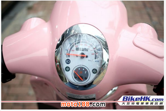 Sky 150的復古風格是它的賣點之一,重點在於圓滑的線條配上電鍍部件。置於把手上的頭燈配上電鍍環,與前擋的電鍍入風口互相呼應。頭沙板的前端加入了電鍍咀,下方的前叉也有電鍍處理。全車用上大幅的車殼設計,所以單一顏色就顯得十分突出了。全車粉紅色跟黑色對撞,在簡約之中穩藏著一種剛強的感覺。說到Sky 150最實用的地方,那當然是平地臺吧!一個寬闊無阻的平地臺,加上座鞍底的空間,已足夠日常應用。另一方面,Sky的座鞍十分闊落,座鞍邊緣設有電鍍手挽,單騎雙騎也合適。