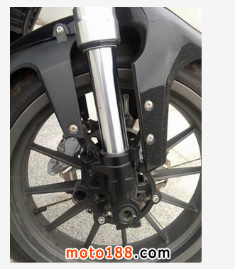 前制動/對向四活塞卡鉗,后制動/單向雙活塞卡鉗,但是小黃龍的前剎車效果欠佳。在前輪轂和減震上預留有雙碟剎盤和泵的位置,按照錢江的作風,也許以后會出個高配版的前雙碟剎也說不定。我打算改裝前雙碟剎,直接買藍寶龍300的剎車套件,因預留有雙碟的安裝位置,可以無損安裝。