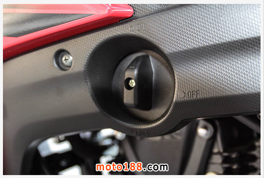 ↑豪爵對車輛細節的處理一向格外用心, 上圖的預備油開關及周邊的護蓋即可看出有別于一般車輛的質感。