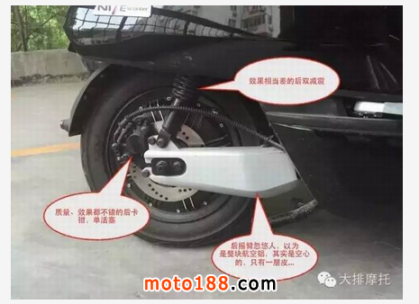 后搖臂糊弄人,挺粗一根鋁制搖臂,用手一摸后面,實際空心的(只有一層),我以為這么高端會用航空鋁材,保證剛性和輕量化