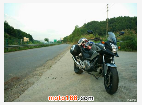 好了,說了那么多,也該說說缺點了,這個車由于是雙缸的設計,所以振動是沒有四缸車的小,這個是相對來說,但絕非國產單缸機那種離譜的爆振!再者就是排氣的聲音啦,本田摩托車一向就是以安靜而著稱,NC700x作為雙缸車,雖然排量大至700CC,但出來的聲音依然寧靜,但靜而不散,實而不薄,開起來總是那么的不顯山不露水。聲音這點,我從CB400換到這個車覺得是最難適應的。最后就是車型,NC700x定位就是新概念偏向全地形風格的車,所以它的外形比較魁梧,這點我前面也說了,比較欺負人,龐大的外型,長軸距注定它與山道無緣,我實際駕駛的心得就是轉彎半徑大,跑一些蜿蜒曲折的山道,略顯笨重,不得不減至比街車更低的速度,才能順利過彎,所以再此我誠意奉勸,正在駕駛或者正準備購入此車跑山的兄弟,一定要管好右手,注意控制速度,畢竟我們只是摩托愛好者,我們享受的是摩托車帶給我們的自由與奔放,絕非速度與激情!謝謝!