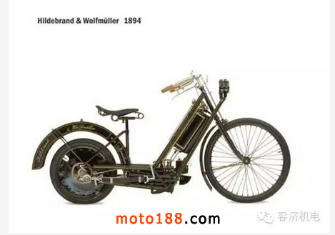 1901年的摩托車,不知道是否該稱之為摩托車,它實在是太像二八自行車了。