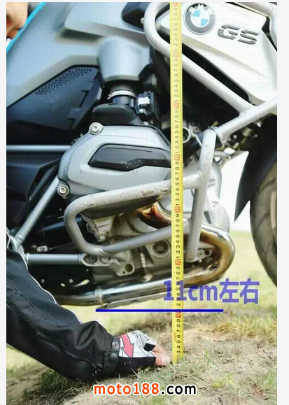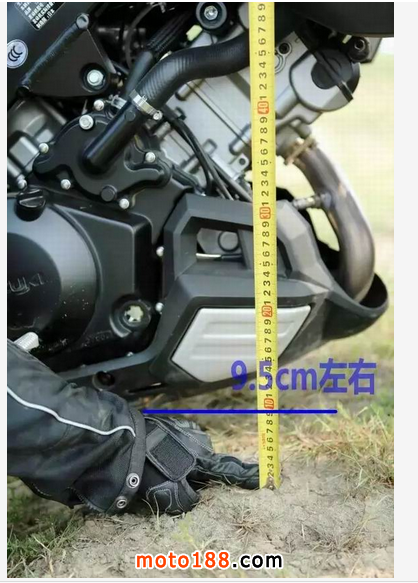 通過兩組對(duì)比可以看到“水鳥”有著11cm左右的離地間隙,成績似乎不錯(cuò),V-Strom 1000也有著9.5cm的離地間隙,在路況較為復(fù)雜多變時(shí)通過性也算說的過去。在測量完成以后,“水鳥”在坡起時(shí),再一次因?yàn)橹亓康脑颍筝喩钌畹南萑肷惩林?hellip;…