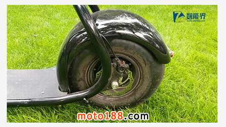 外形的設計,是產品的一大亮點。酷似哈雷摩托的外觀造型,也為其吸引了無數的目光和眼球。所以產品最令人眼前一亮的地方,還是要屬于前后兩個超大的輪胎。兩個直徑為18英寸,寬度為9.5英寸的超寬直紋真空輪胎,著實將我們震撼了一把。要知道一般汽車輪胎的尺寸大小也不過如此,而在我們對比之后,發現Citycoco的輪胎還真是和普通汽車的輪胎旗鼓相當。
