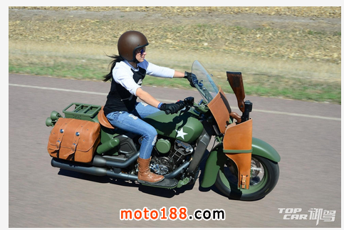 實用的邊包容積可觀,風擋不但提升復古風格。還有實際用途,最顯眼的是車頭處的皮質槍托,里面配一把著名的湯普森沖鋒槍。
