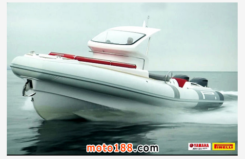Pirelli PZero 1100 Cabin是一款適宜與短距快速航程的運(yùn)動(dòng)型橡皮艇。船體和甲板的設(shè)計(jì)秉承著輕型、穩(wěn)固和耐用的原則。而管道則增加了浮力儲(chǔ)備,并更好地控制傾斜度。雖然船的外觀圓潤(rùn)而充滿動(dòng)感,但在甲板下的走廊和洗手間仍能有足夠空間讓人直立,而駕駛艙更能容納6人。在管道上和船體中央,運(yùn)用了倍耐力PZero輪胎的元素。儀表盤能絕佳監(jiān)測(cè)所有設(shè)備。正如摩托車一樣,我們需要挖掘出其裝備的所有技術(shù)。倍耐力PZero 1100 Cabin的排水量為4169立方厘米,可以搭載雙外置雅馬哈F300 V6 24門300馬力發(fā)動(dòng)機(jī)。根據(jù)其船身268千克的重量,功率重量比為1.1千克每馬力。