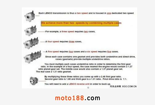 為了把手動換擋的時機控制和換擋速度與自動變速箱的方便結合在一起,山姆們開發(fā)了Lenco競賽變速箱。這種變速箱采用檔桿取代自動變速箱里面的液壓換擋結構,車手不用額外控制離合器踏板,只需要拉動檔桿即完成換擋動作。這樣既避免了手動變速箱復雜的離合器操作,又解決了傳統(tǒng)自動變速箱動力的損耗。