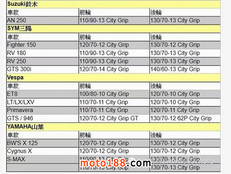 Michelin 在頗具高評價的重車胎之外,近來也積極布局臺灣小車市場,已經引進一陣子的City Grip 系列,在歐洲是許多車廠指名使用的原廠配胎,著重在耐磨耗、晴雨適用的高規格通勤胎,隨著VESPA、 APRILA 等歐式速克達在臺灣逐漸打開市場,臺灣車友應該也漸漸能看到這款輪胎的蹤影。