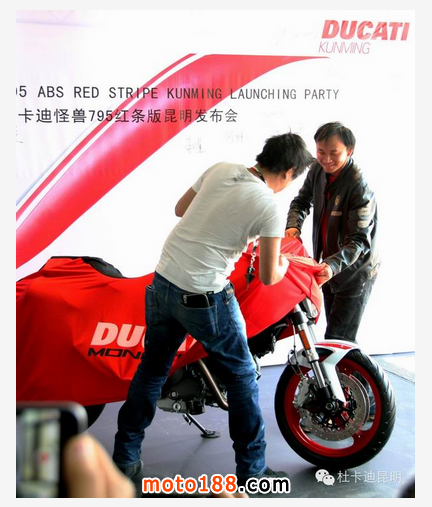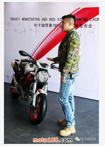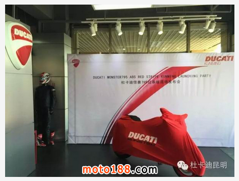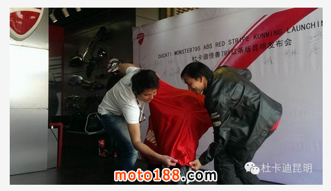 2015年3月14日,杜卡迪昆明展廳舉辦了Monster795紅條版的新品發布會,同時組織杜卡迪車主完成了環滇池探春之旅。Monster795 擁有經典的設計、靈活的操控和超高的性價比,自1993年首臺 Monster 怪獸面世以來,這一車系推出已經有22年時間,杜卡迪一直秉承堅持 Monster 怪獸最初的設計理念:化繁為簡,制造出最方便、最純粹的摩托車。這一車系開創了“裸車”這一經典車款的全新時代,時值今日,它已經杜卡迪全球市場范圍內最熱門車型!