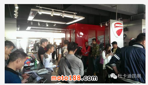 杜卡迪昆明團隊為這次發布會做了精心的準備,為前來參與的客戶準備了精美禮品和精致餐點,現場氣氛活躍,大家共同見證了Monster795紅條版的揭幕,為春日里的昆明增添了一道亮麗的風景!