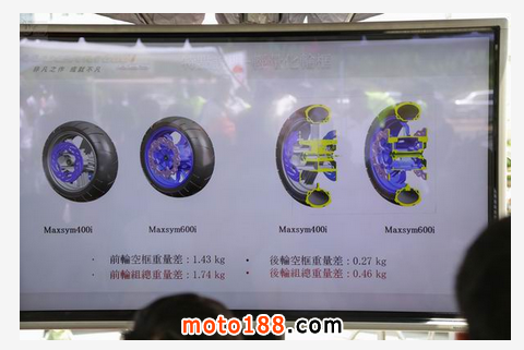 輪框部分雖然延續(xù)前15寸後14寸的設(shè)計(jì),但是這次輪框使用新技術(shù)進(jìn)行輕量化,在不犧牲剛性的情況下前後輪都進(jìn)行減重,大量挖空設(shè)計(jì)省下了不少重量,相較400i前後框總共差距2.2公斤,也就是簧下重量差距2.2公斤。