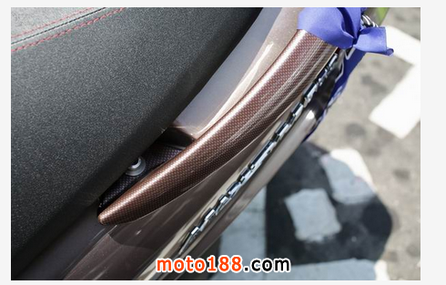 龍頭手把與後扶手部分有碳纖維花紋咬花,且根據(jù)車(chē)色(消光黑、棕、白)不同花紋顏色也有相應(yīng)的配對(duì)十分細(xì)心