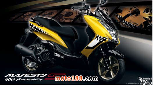 采用70年代YAMAHA經(jīng)典的黑黃賽車涂裝及特別設(shè)計的60周年紀(jì)念貼飾同,以此配色搭配SMAX,推出這款"60周年限定版"