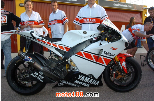 而這個周年紀(jì)念彩繪的由來,則是YAMAHA在2005年時為了慶祝創(chuàng)辦第50周年紀(jì)念,決定在MOTO GP賽事中幫YZF-M1采用了兩個特殊配色的速度鏈塊設(shè)計
