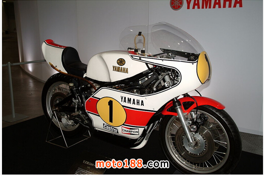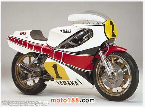 1973年的YZR 500,看得出保留了1960年搭配,以白色背景搭配紅線條,而此涂裝則被廣泛的應(yīng)用到各車種