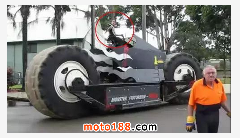 這輛號稱世界上最大的摩托長達9米,高3米。它來自澳大利亞,其裝備了一臺柴油卡車引擎,還配備了6速自動變速箱。它可以輕松碾壓一輛汽車。
