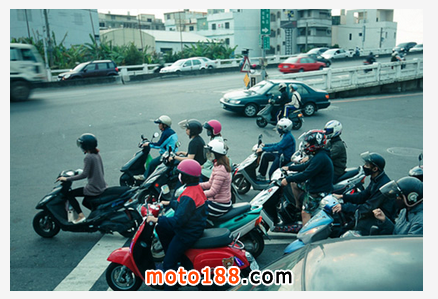 據媒體綜合報道,臺北街頭,每逢上下班高峰時刻,當路口的紅燈變綠時,隨著“突、突、突”的轟隆聲,等待在路口的一輛輛摩托車(臺灣俗稱機車)魚躍般搶在汽車前疾駛而出,場面蔚為壯觀。而臺灣的電影中,永遠也少不了機車的影子。