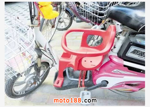 記者采訪發現,“寶寶座”座通常被固定在電動車或摩托車的踏板上,用兩根長皮筋綁住,還有些被固定在車把與車座之間。座椅構造也十分簡單,多數為鐵質,座前設有把手,兩側有護欄圍住,兒童坐在座椅上看似十分安全。不過,為防止孩子從車上摔下,許多家長還是用兩腿緊緊夾住孩子。“幼兒園接孩子的很多都安了寶寶椅,孩子太小坐在后座很不安全,萬一掉下去也不能及時發現,寶寶椅安在踏板上,孩子的情況能隨時看到。”市民王女士告訴記者,她買這種產品更多是為了孩子安全。