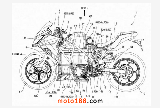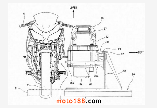 雖然申請專利的申請中標注試驗車輛為Ninja 1000,但老周從示意圖車輛的后搖臂及前叉來看,明明就是一臺Ninja 300······
