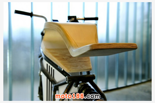 受經(jīng)典定制與咖啡館賽車影響,設(shè)計(jì)師 Martin Hulin 帶來了 Expemotion「E-Raw」純電動(dòng)概念摩托車 。盡管仍然只是一個(gè)概念,然而在四個(gè)匠人的努力下,首個(gè)完整的原型已然展現(xiàn)在我們面前,金屬與木材原料各安其位,共同塑造了這輛獨(dú)特的摩托車。管狀鋼架中容納了驅(qū)動(dòng)電池,并對(duì)膠合板座位起到支撐作用,而超過八十層木板模制而成的座位則既堅(jiān)固、又富有舒適的彈性。另一方面,設(shè)計(jì)師還將智能手機(jī)融入其中,可作為儀表盤、中控盤使用,這是傳統(tǒng)與現(xiàn)貨、機(jī)械工藝與電子技術(shù)的完美結(jié)合。