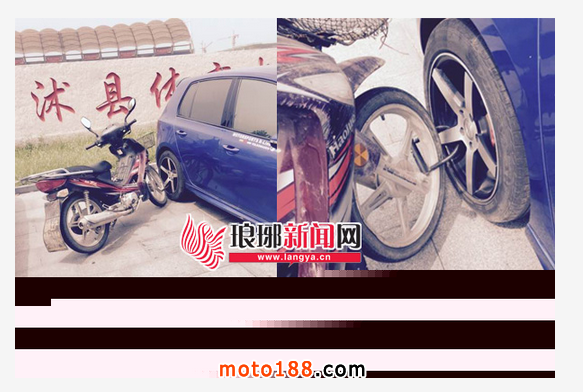 9月2日,網友“臨沭正哥哥”在臨沭貼吧發帖子稱,在臨沭縣體育中心門口停車,吃完飯回來后發現,一輛摩托車鎖在了其轎車右后輪上,這讓他十分驚訝。
