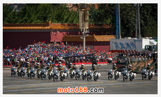 2015年9月3日,我國舉行了盛大的、以“中國人民抗戰(zhàn)勝利暨世界反法西斯戰(zhàn)爭勝利70周年”為主題的閱兵儀式。去年底恢復(fù)使用的摩托車禮賓護衛(wèi)方隊是此次抗戰(zhàn)閱兵的重頭戲之一。由45輛國賓摩托車組成的方隊呈箭頭狀護衛(wèi)抗戰(zhàn)老同志方隊乘坐的敞篷車進場,在分列式中第一個通過天安門,備受矚目。