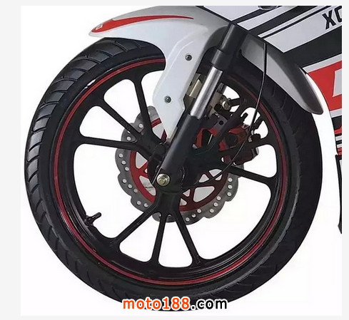 紅色輪圈寬鋁合金車輪,配置扁平真空輪胎(110/60-17、140/60-17),防爆防扎,安全耐用;