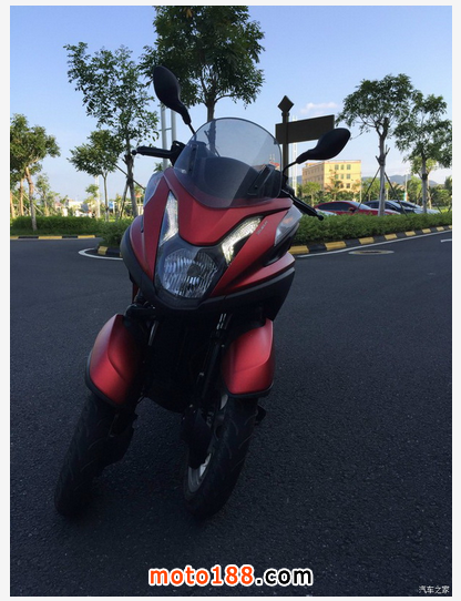 本來訂的白色,去泰國時特地看了下實車后決定改要紅色,車漆質(zhì)感很好,不是一般國產(chǎn)貨可比。可惜現(xiàn)在ABS的沒貨了!算是小小遺憾吧!不過誰讓她那么美,那么的與眾不同!騎行在路上的拉風(fēng)程度不亞于敞篷小跑!