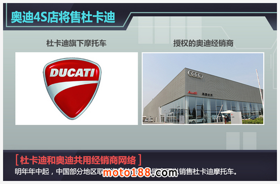 2015年我國汽車行業(yè)步入了低谷,各家車企的年銷目標都面臨達不到的尷尬境遇,和汽車市場類似,受到汽車降價和部分城市禁摩的沖擊,2014年我國摩托車產(chǎn)銷量分別為2126.78萬輛和2129.44萬輛,同比也有所下降,不過摩托車市場潛力非常大。杜卡迪作為摩托車市場中的領導品牌,越來越注重中國市場的拓展和開發(fā),網(wǎng)通社在對杜卡迪全球CEO Claudio Domenicali先生對網(wǎng)通社表示,明年年中起,中國部分地區(qū)取得資質(zhì)的奧迪經(jīng)銷商可以銷售杜卡迪摩托車。此舉表明杜卡迪有意借奧迪完善的經(jīng)銷商體系來方面自己擴大市場,在品牌建設方面發(fā)力。