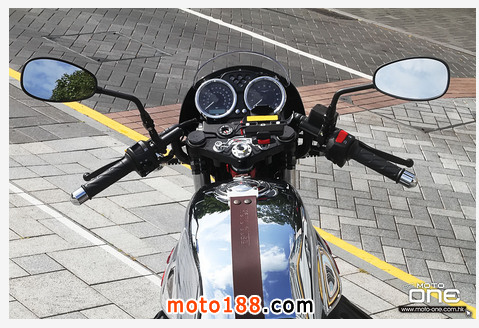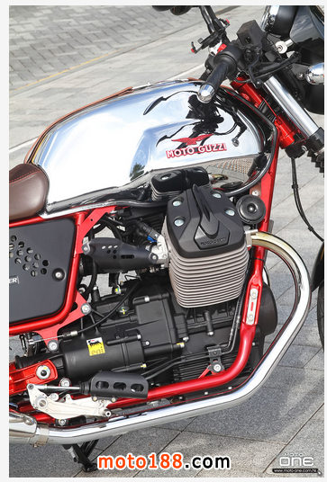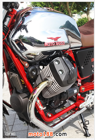 ●電鍍油缸上面配置精緻烙而有MOTO GUZZ 字款的皮帶。