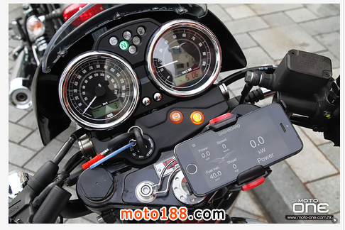 ●V7 II 車(chē)系可經(jīng)過(guò)藍(lán)牙連接智能電話(huà)的MOTO GUZZI專(zhuān)用APPS,可看到正常表板外的更多數(shù)據(jù),可供騎士參考。